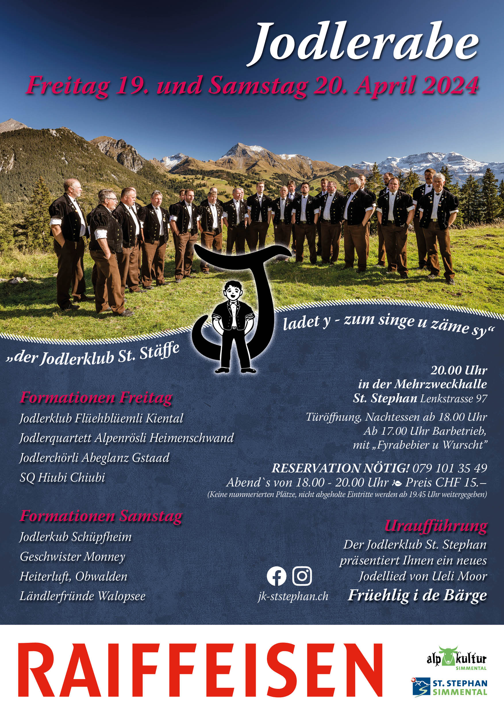 um 20:00Uhr in der Mehrzweckhalle in St. Stephan BE